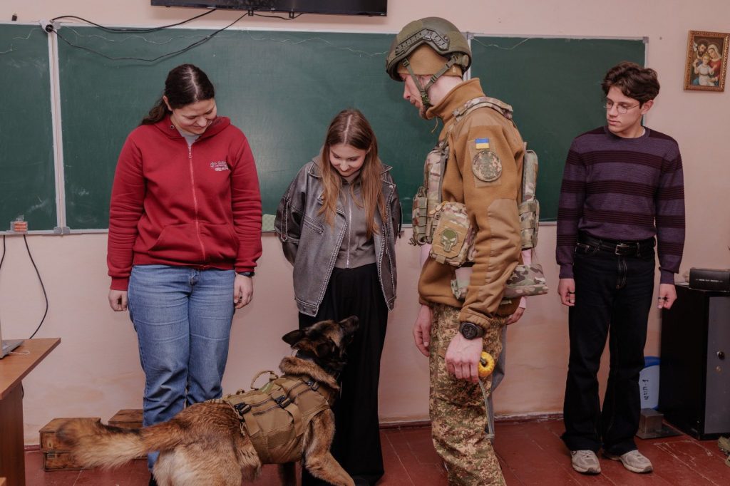 Особливий інтерес у студентів викликала демонстраційна частина заходу. До зустрічі були залучені кінологи разом зі службовими собаками, які показали елементи підготовки службової собаки, виконання команд та злагоджену взаємодію під час виконання службових завдань. Присутні мали можливість побачити, як проходить тренування чотирилапих помічників та яку важливу роль вони відіграють у забезпеченні безпеки та виконанні службових операцій.